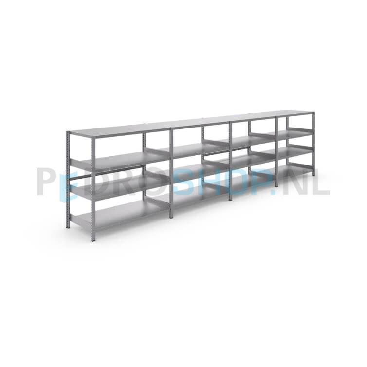 De meest populaire stellingkast uit ons assortiment is de GS3 metalen magazijnstelling, die voldoet aan de strenge ISO-9001:2000 norm. Meer dan 2.500 klanten kozen voor dit type stelling vanwege de eenvoudige montage, hoogwaardige kwaliteit en vele uitbreidingsmogelijkheden. Zo is het mogelijk in de configurator om het draagvermogen per legbord te verhogen tot 500kg, afhankelijk van de gekozen diepte. Of u nu een kleine of lage stelling nodig heeft of een grote stellingkast, bij ons bent u aan het juiste adres.